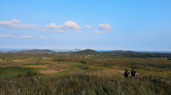 억새로 가득한 오름을 함께 걷는 부녀의 얼굴에는